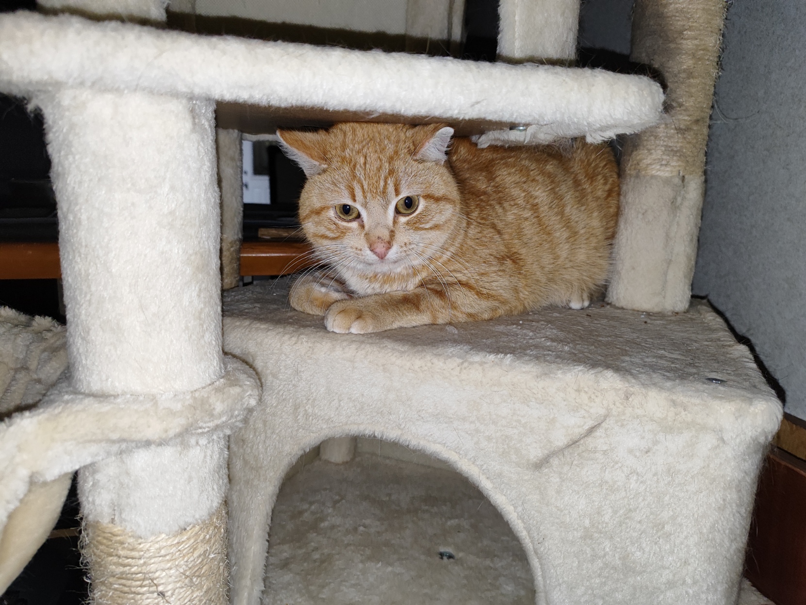 He is gentle, purrs easy and exudes feral male testosterone. The other cats gave him wide birth but are starting to warm up.